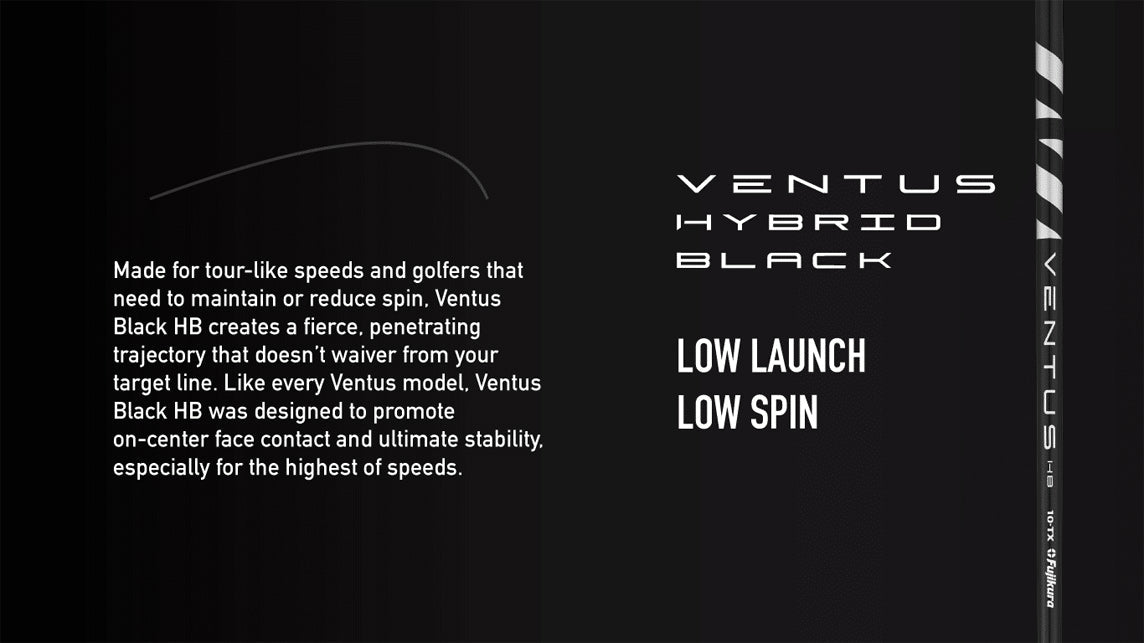 The all-new Ventus HB utilizes the revolutionary benefits of Fujikura’s proprietary VeloCore Technology into an ultra-stable, forgiving, high-performance hybrid shaft. Ventus HB was developed to maximize the versatility and forgiveness of today’s hybrids & utility clubs through a low-torque, ultra-stiff tip hybrid that’s supported by the velocity and stability of Fujikura’s proprietary VeloCore Technology. The full-length low-torque and ultra-stiff tip serve as a stability mechanism through the turf and at impact, providing consistent distances and tightening dispersion, bringing shots closer to your target.