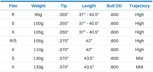 Can't see what you're looking for? Email us as we can custom order any shaft.
