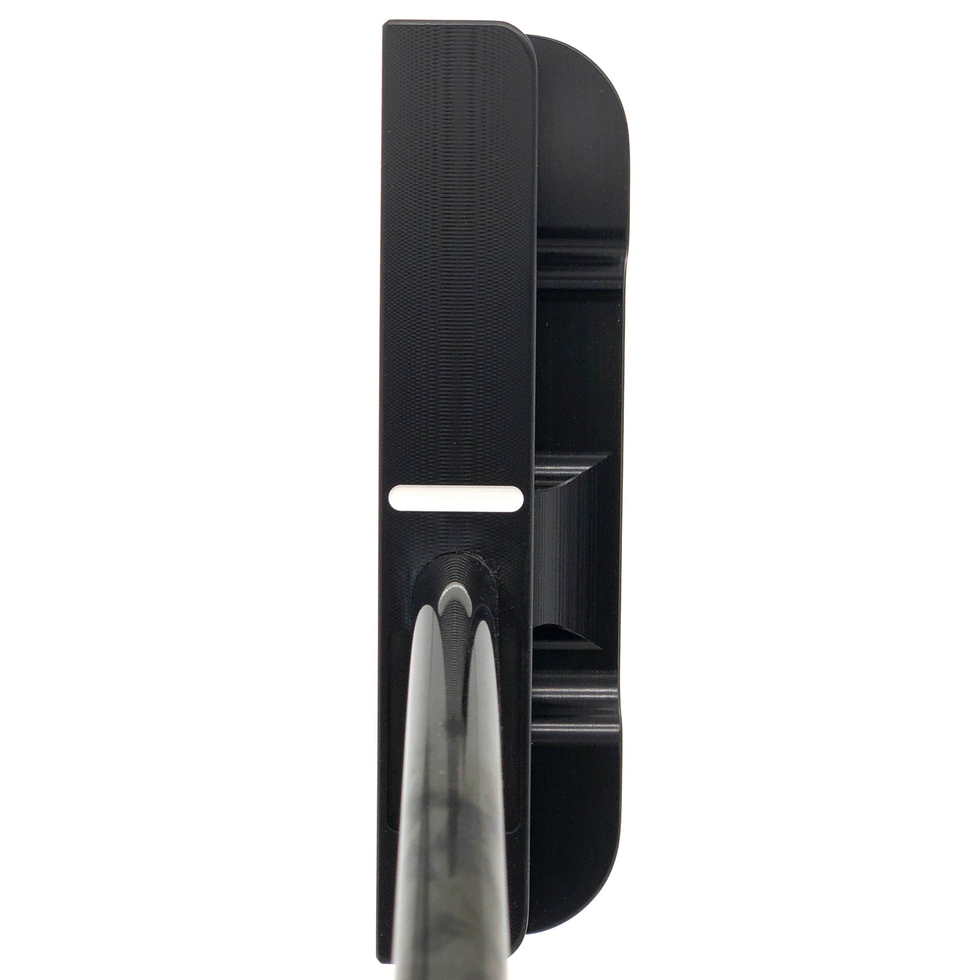 The putter is face balanced at impact or balanced to the plane, meaning it's dynamically balanced throughout the stroke and naturally returns to square at impact, with less manipulation required during the stroke to keep the putter face on the correct path.