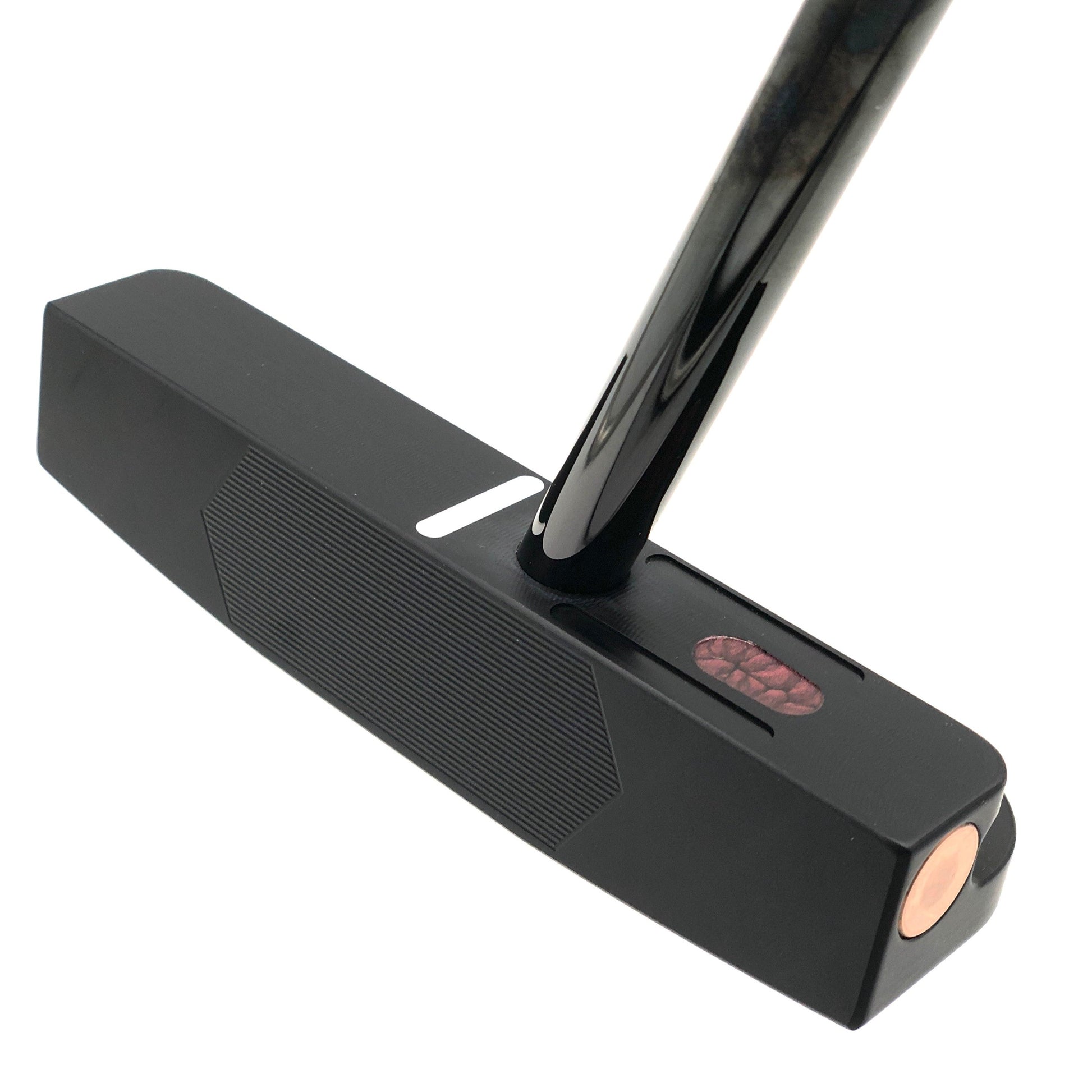 The FGP design is SeeMore's most recognizable product, the flagship shape for the brand, and the winning putter of 3 Major Championships and over 20 Tour victories. The smallest of the GIANT series, the Mini GIANT is created using 4 sets of non-adjustable copper weights in the extreme toe and heel section as well as the perimeter of the sole, for the ultimate MOI to size ratio. The Milled Aluminum head weight is 350 grams. Stealth RST Finish or White Lines with Red RST Finish.