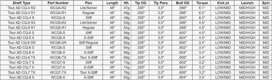 While the line up of Mid kickpoint to High kickpoint shafts is increasing, "TOUR AD CQ" was developed in response to the voice of users who prefer the low kickpoint type. It is a model that has a firm grip with a Mid-Low kickpoint that bends like a whip, increases the head speed up to impact and easily hit the ball. By increasing the rigidity at the hand section and adjusting the rigidity difference, we have achieved an acceleration before and after impact while maintaining good tempo on the down swing from the top position. With flexible head speed and strong high trajectory, you can expect a hit that will "ConQuer" your entire golf game and golf courses.
