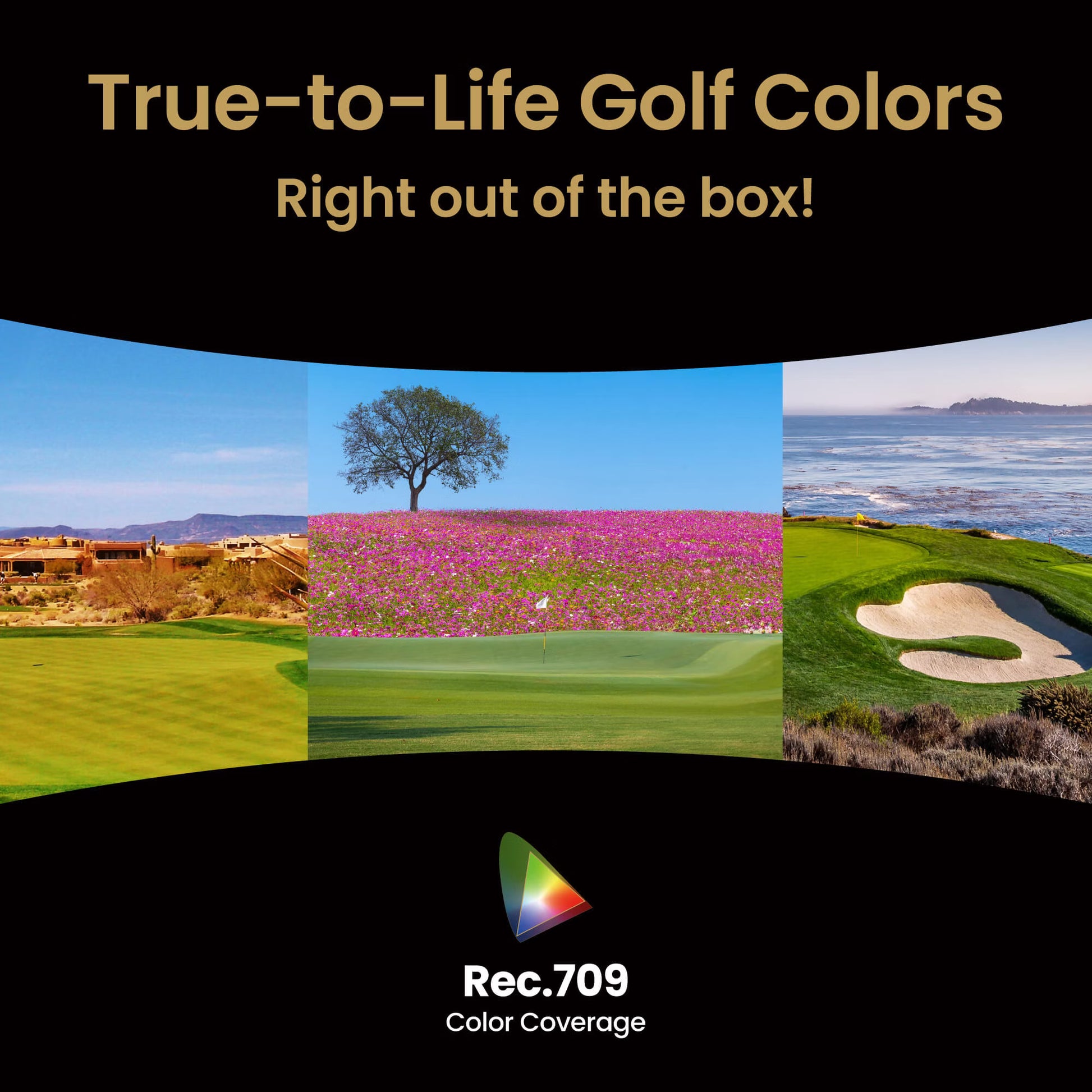 Vivid Colours – Dual colour wheel system achieves 92% Rec.709 for accurate greens, fairways, and course detail.