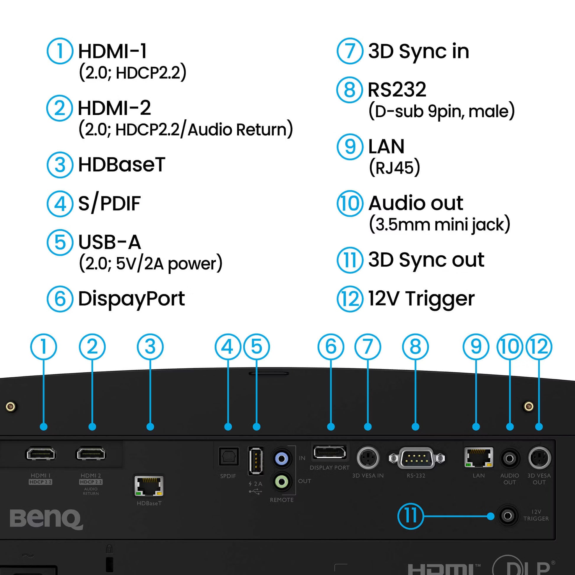 LAN Control – Compatible with Crestron, AMX, PJ Link + BenQ’s DMS Local software for centralised management.